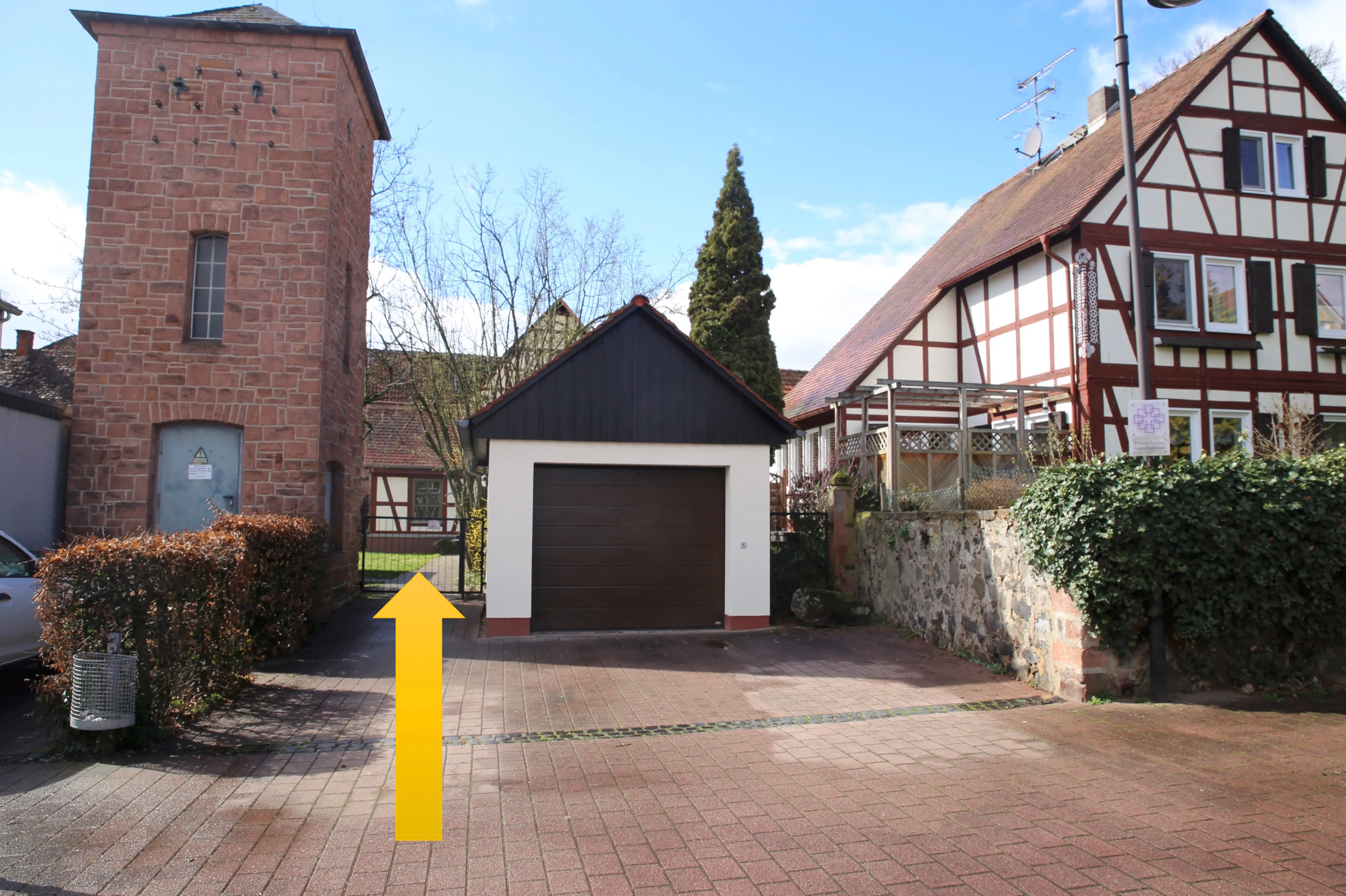 Zugang zum Gemeindehaus neben der Garage