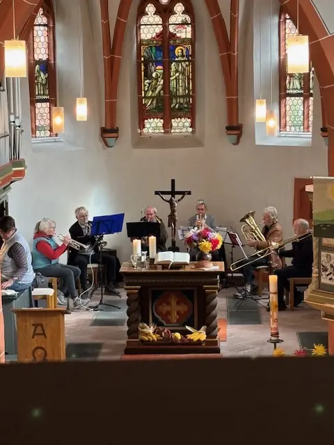 Bei uns ist Spaß an der Musik der Hauptakteur. Wir buddeln uns durch ein richtig abwechslungsreiches Programm: Von den schönen alten Chorälen aus dem Gesangbuch über richtig frische, moderne Stücke von jungen, hippen Komponisten aus der Kirchenmusik-Szene bis hin zu den absoluten Klassikern wie Bach, Händel oder Telemann. Und weil wir uns nicht festnageln lassen, pumpen wir auch gerne mal den Klassikern von Louis Armstrong ordentlich Luft ein oder lassen ein Michael Jackson-Medley durch die Posaunenröhren jagen! Überraschung ist garantiert. Donnerstagabend bei uns? Das heißt: Lachen, Quatschen, gemeinsam Töne jagen (manchmal auch fangen…) und einfach eine richtig gute Zeit haben. Wir nehmen die Musik ernst, aber uns selbst nicht immer bierernst! Neue Mitspieler mit Lust auf Blech und Blasmusik sin jederzeit herzlich willkommen - egal ob du Profi bist oder mal reinschnuppern willst. Instrumente haben wir meist auch parat!